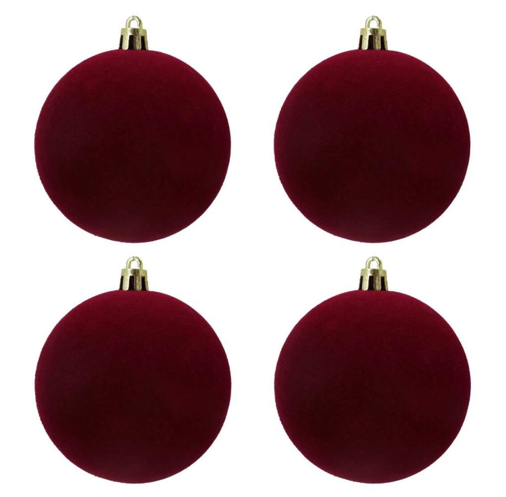 Box 4 sfere di Natale in velluto bordeaux