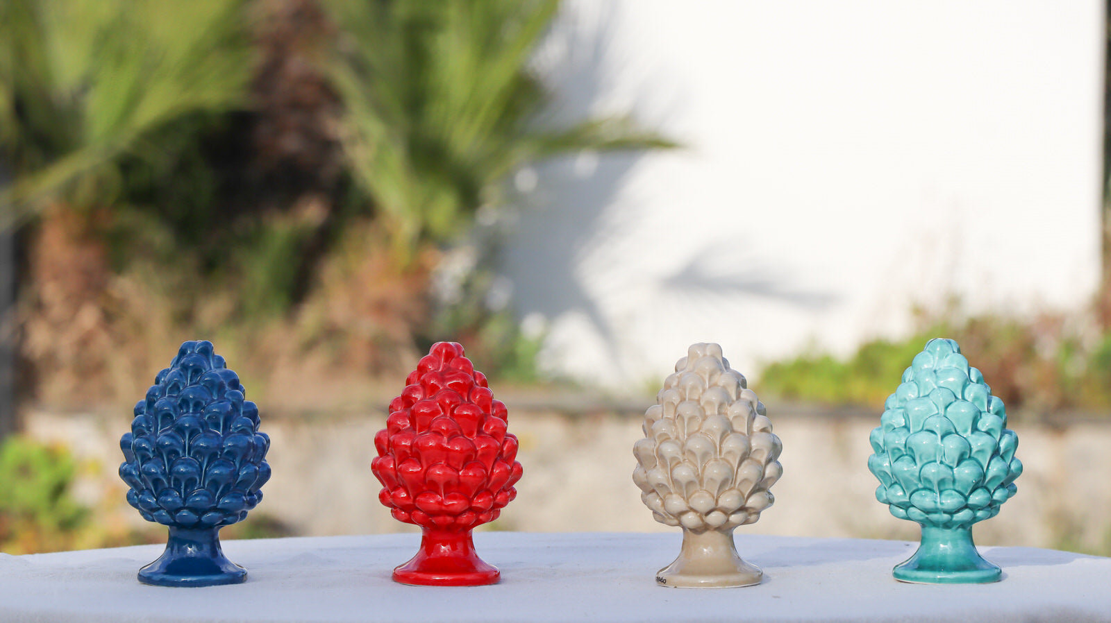 La pigna è un oggetto d’arredo in ceramica, simbolo della più profonda tradizione siciliana, una delle maggiori rappresentazioni d’arte che portano con sé un messaggio di fortuna e prosperità.