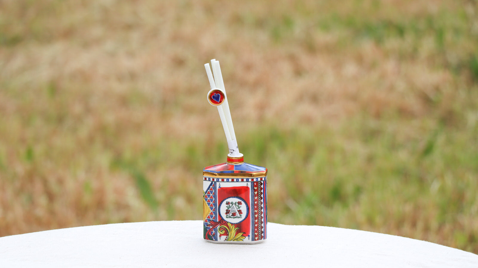 Porcellana - 7 x 3,7 cm - H 13 Cm - Set 3 Bastoncini con 1 Bastoncino decorativo in porcellana