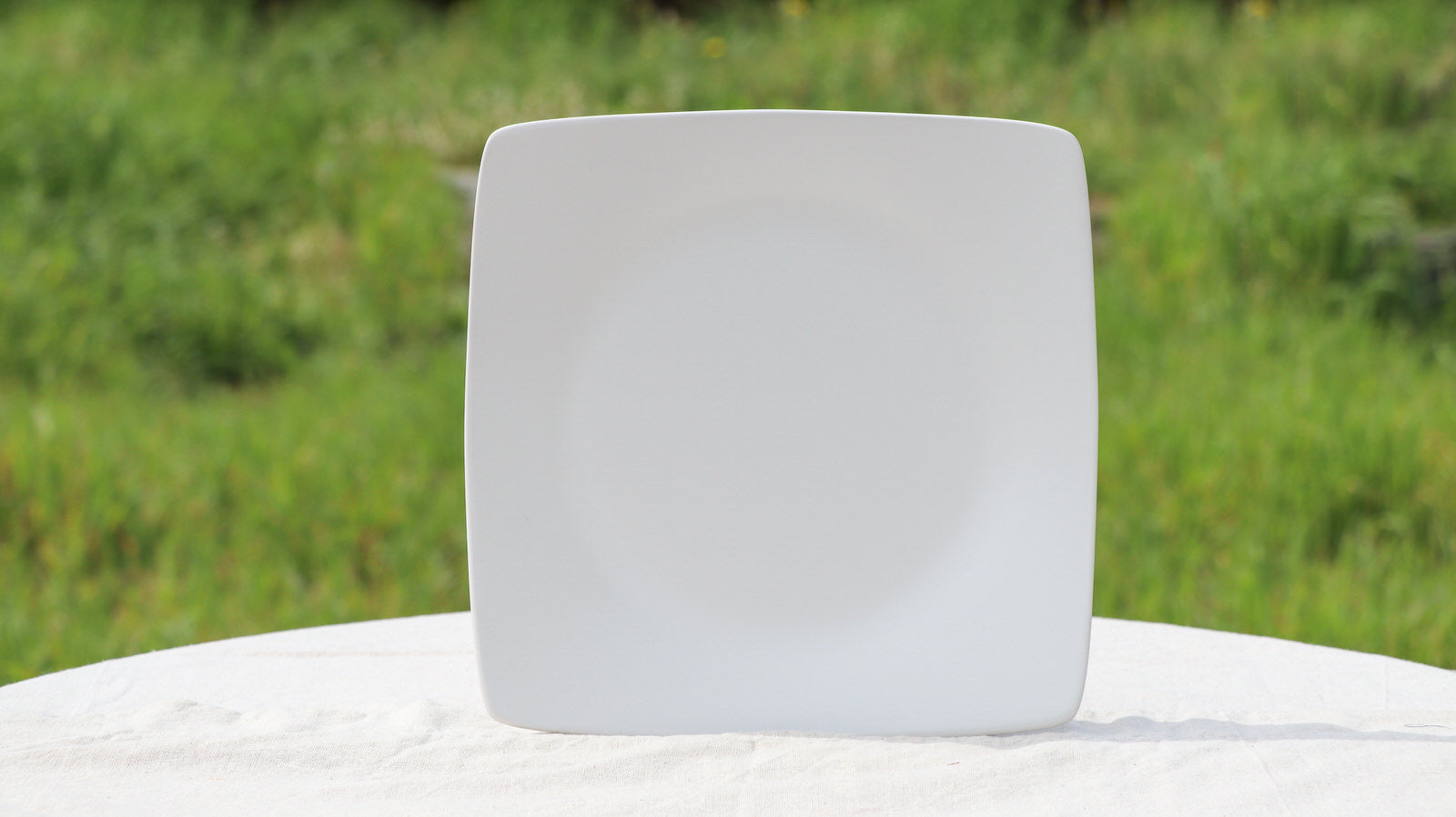 - Dimensioni: piatti piani 25 x 25 cm; piatti fondi 17.5 x 17.5 cm; piatti frutta 21 x 21 cm
