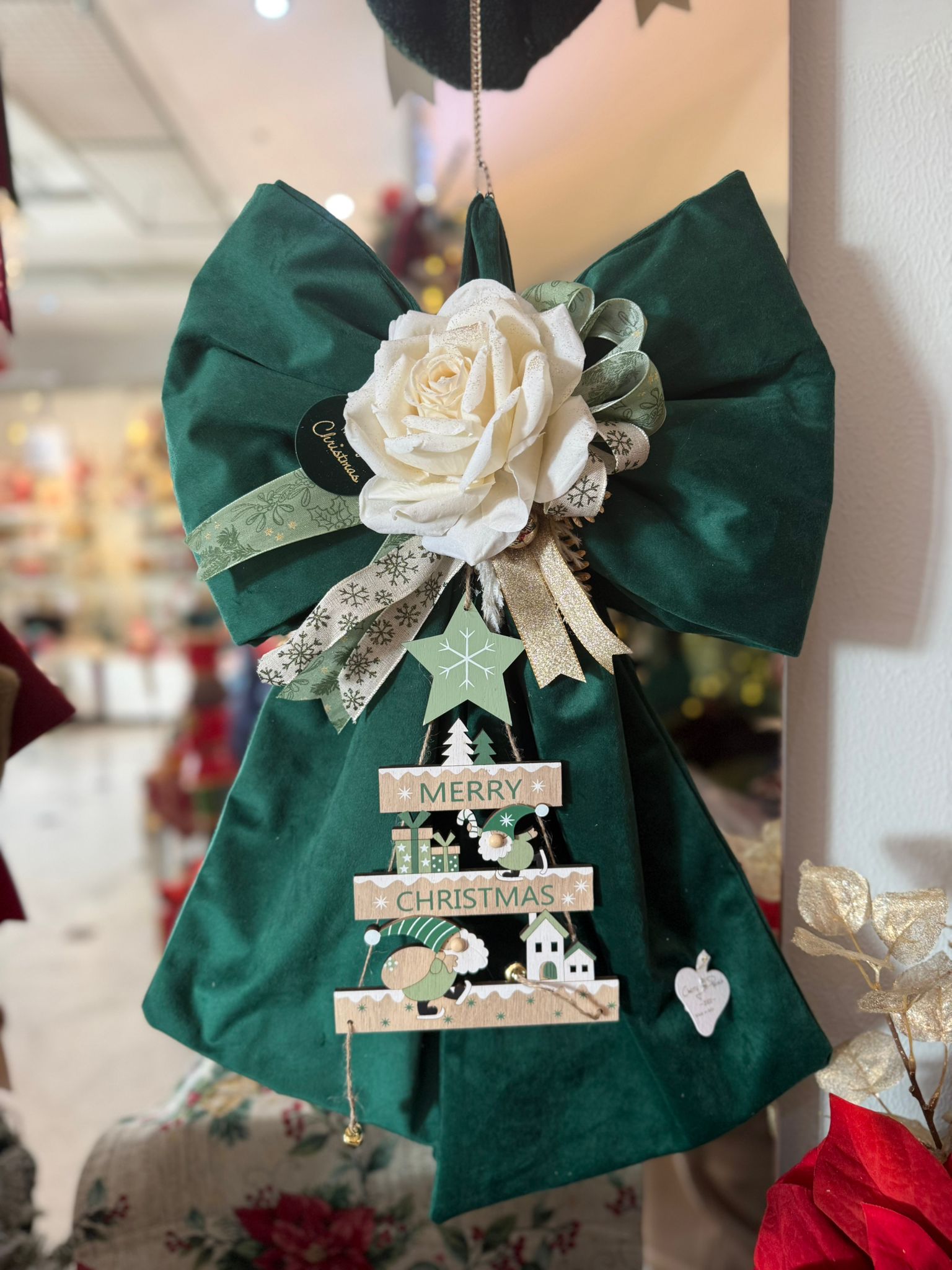 Fiocco verde in velluto con rosa