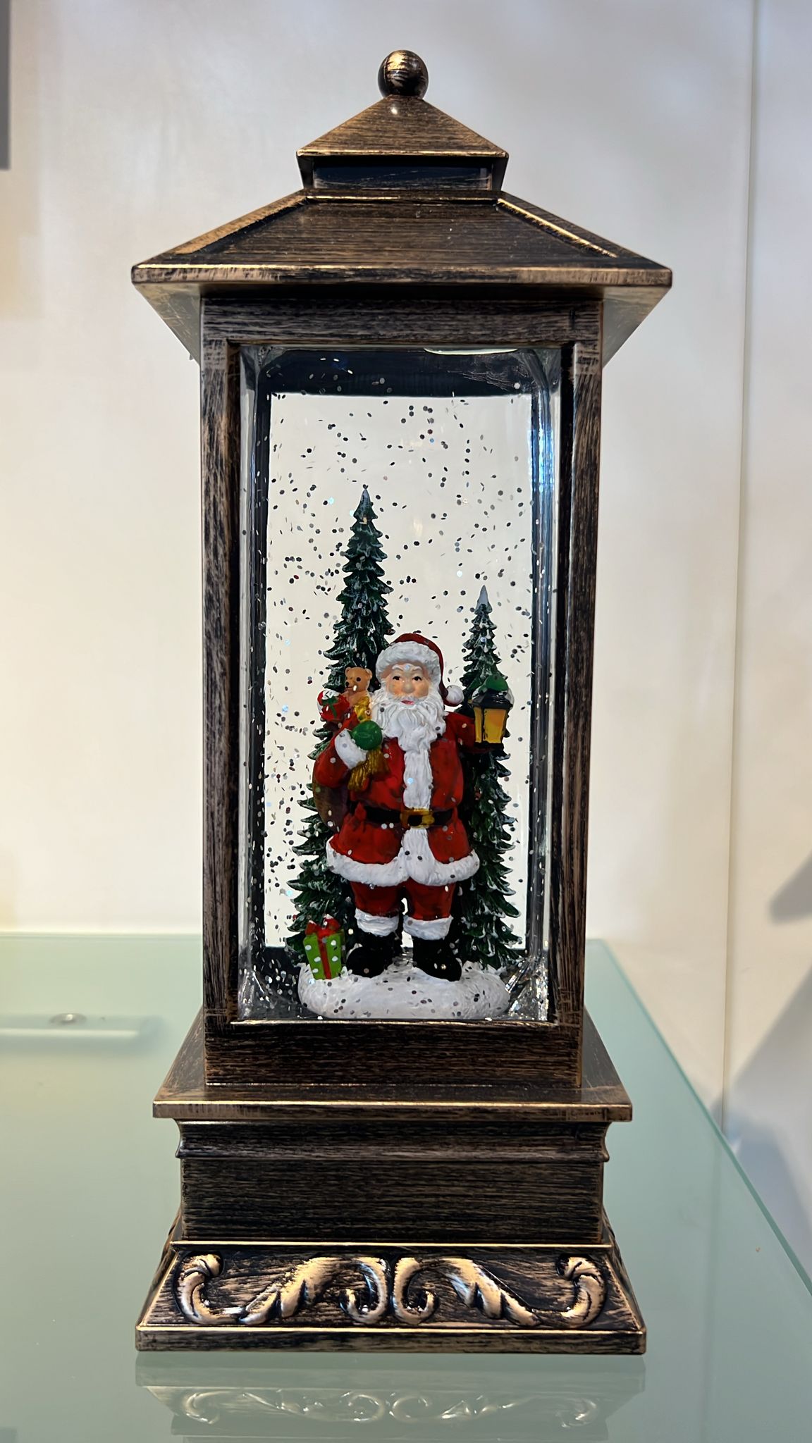 Lanterna Babbo Natale in resina acqua/neve con luci led e cavo usb