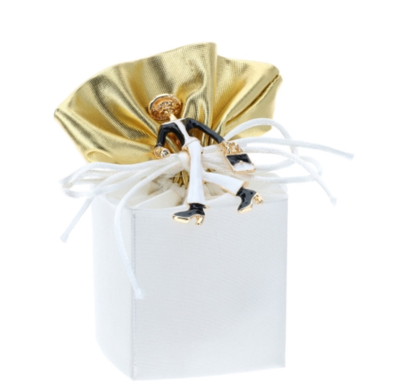 SACCHETTO TAFFETA' BIANCO/ORO 6X6X14CM
