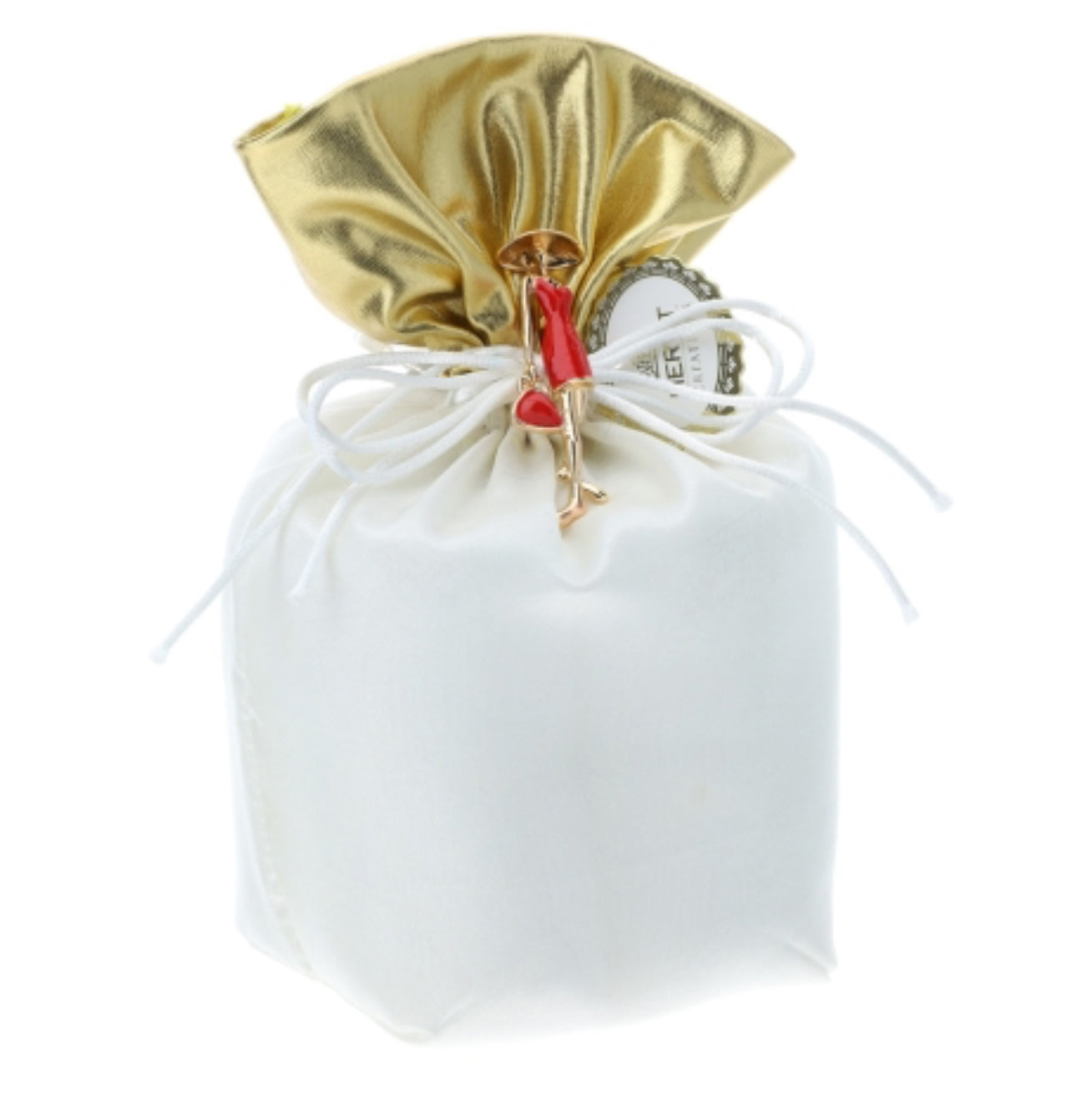 SACCHETTO TAFFETA' BIANCO/ORO 8X8X19CM