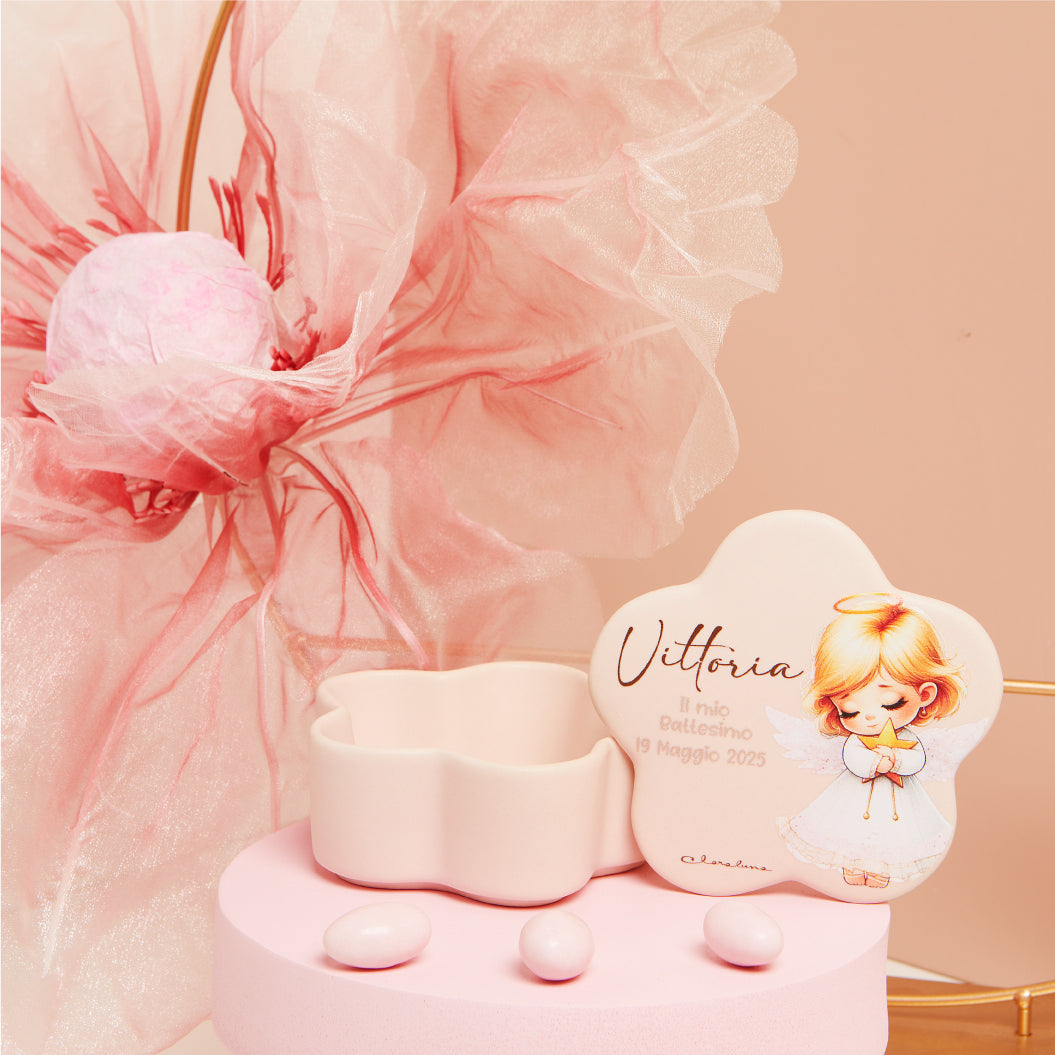SCATOLINA ROSA ANGIOLETTO CON CANDELA 10.8X10.8X6 CM