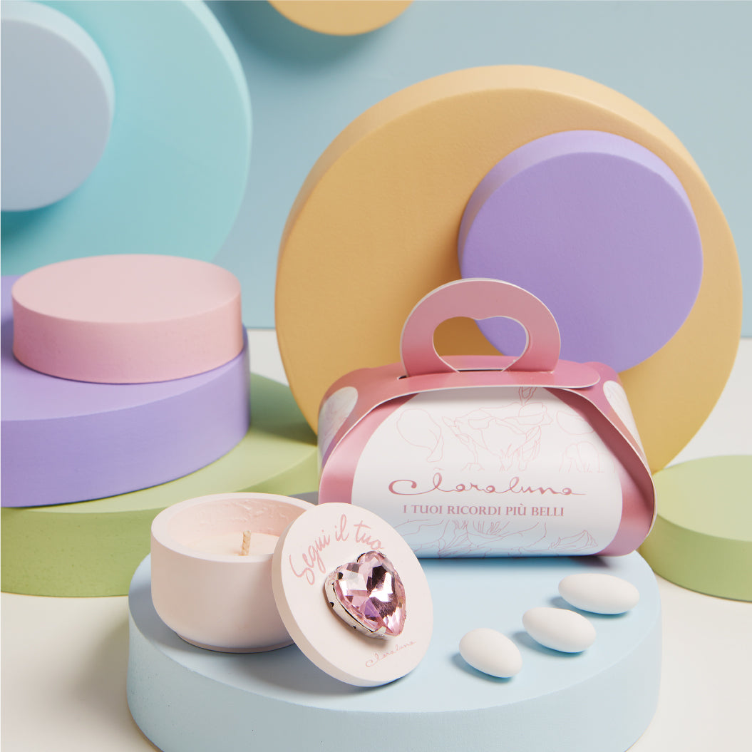 SCATOLINA ROSA CUORE ROSA CON CANDELA Ø 6X4 CM
