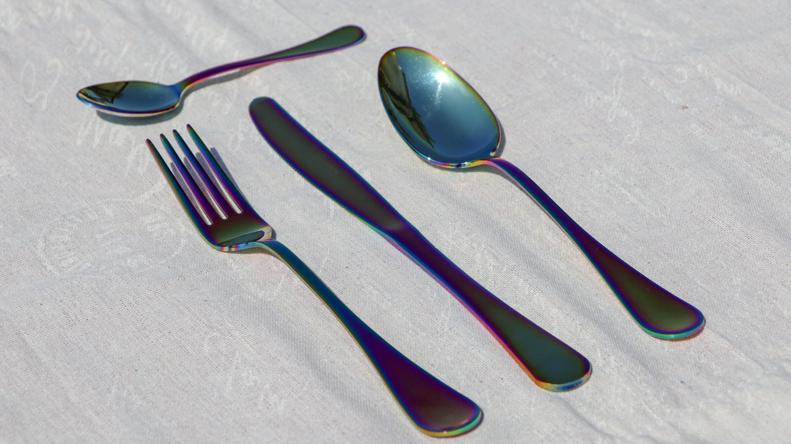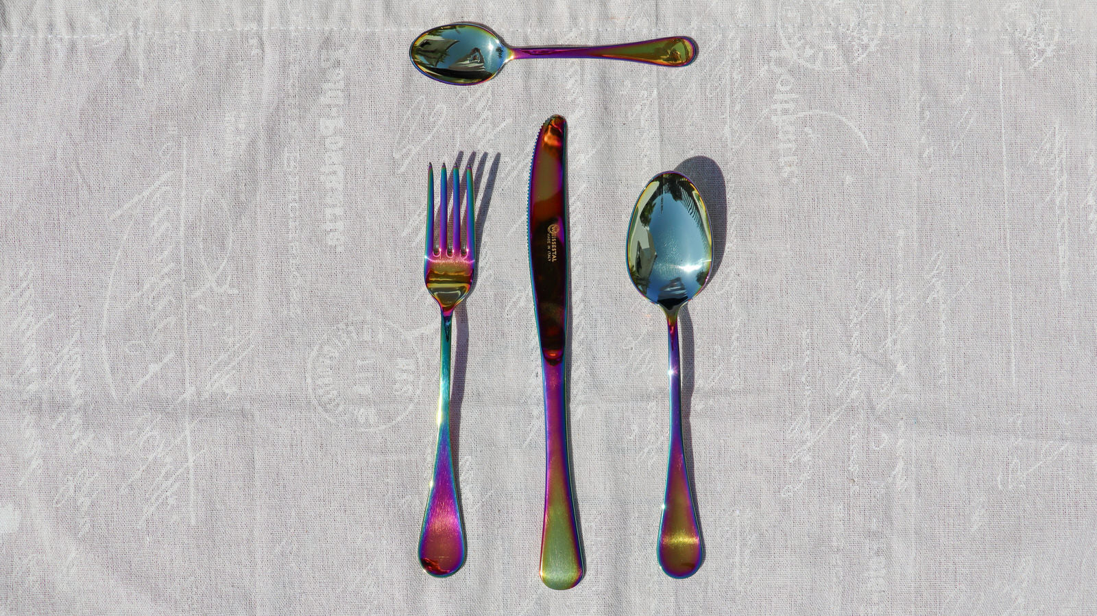 Posto tavola 4 pezzi in acciaio Inox 18/10 multicolor lucido. Collezione Sintesi Colormix.