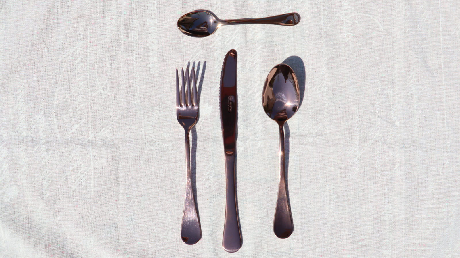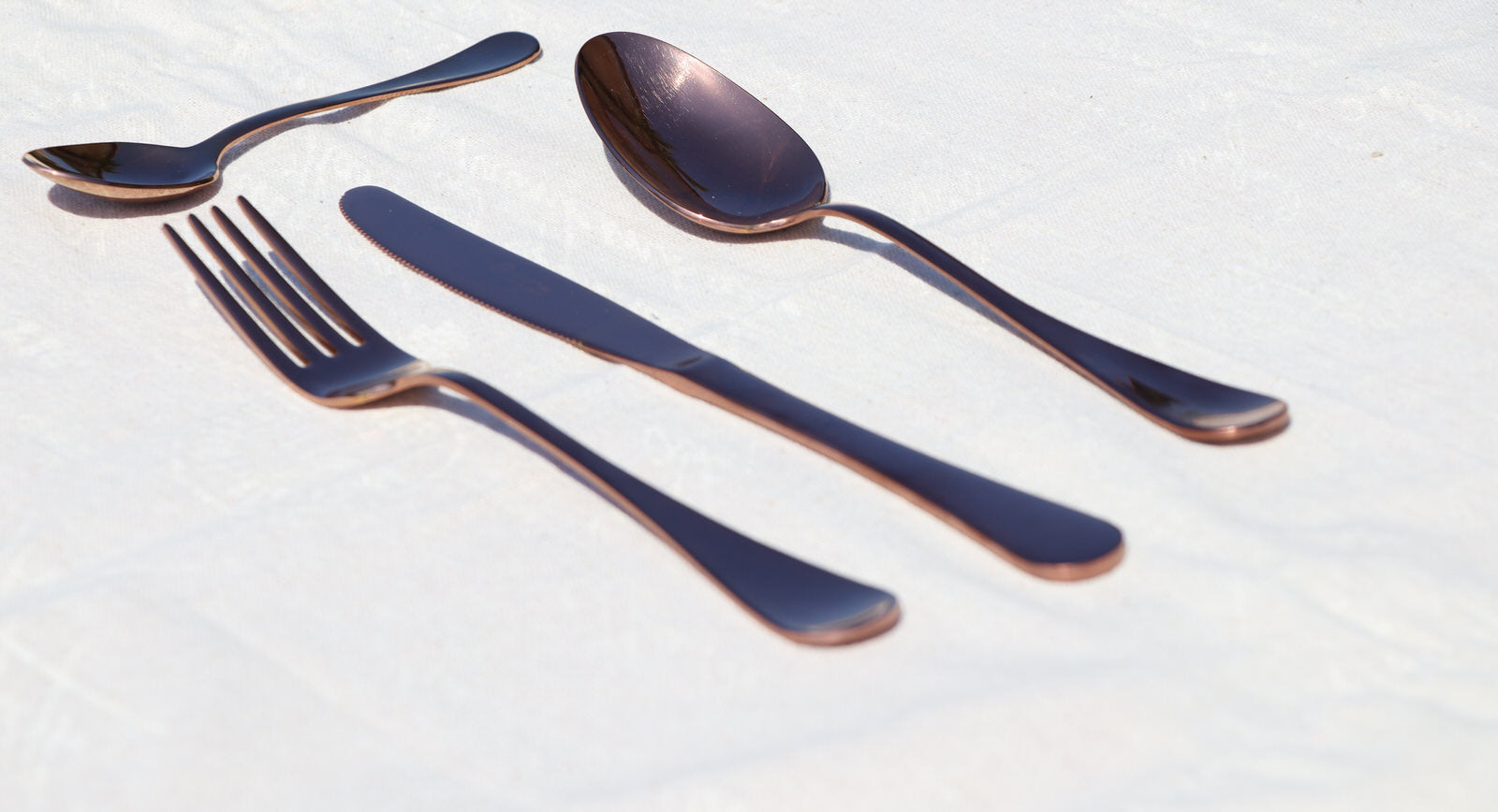 Posto tavola 4 pezzi in acciaio Inox 18/10, colore bronzo lucido. Collezione Sintesi Copper.