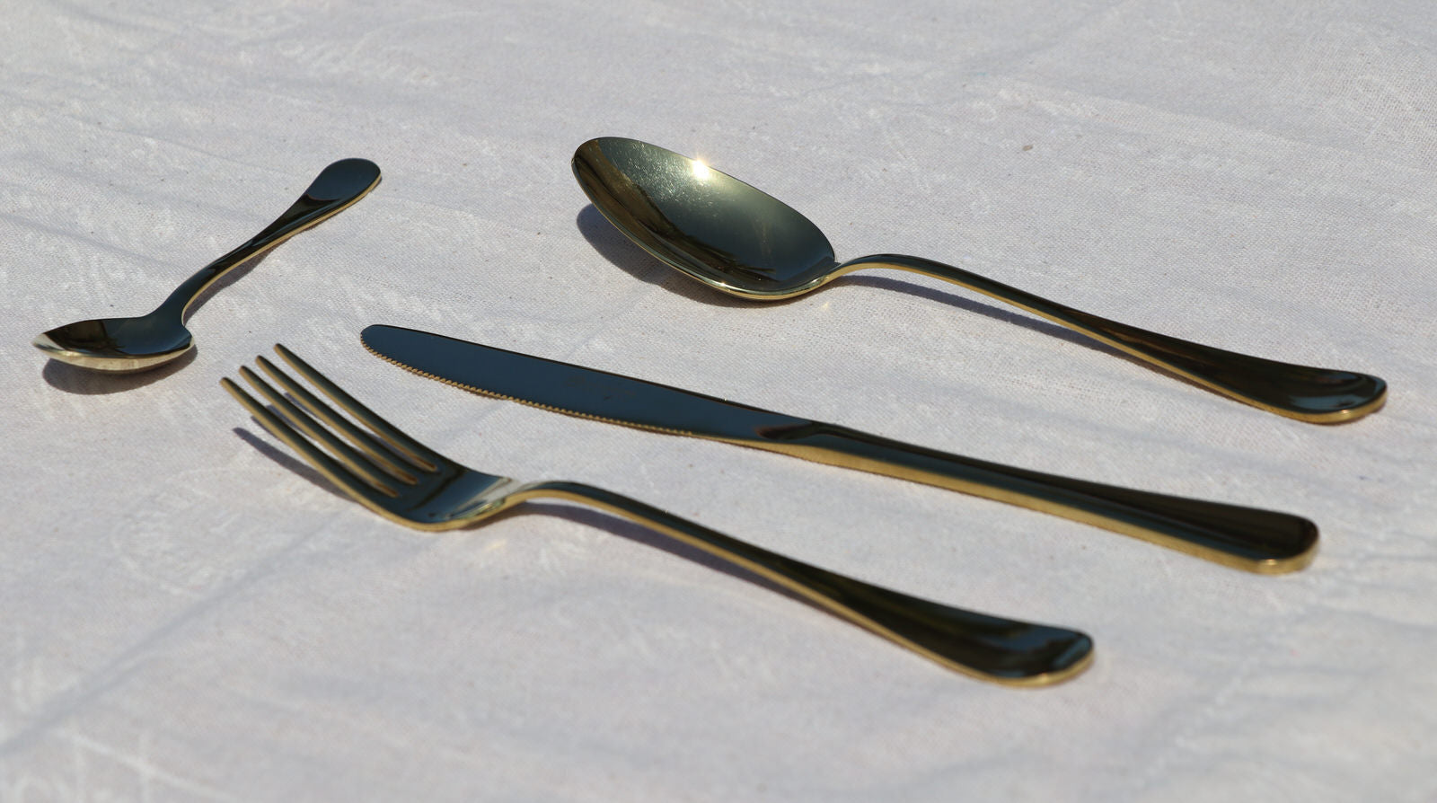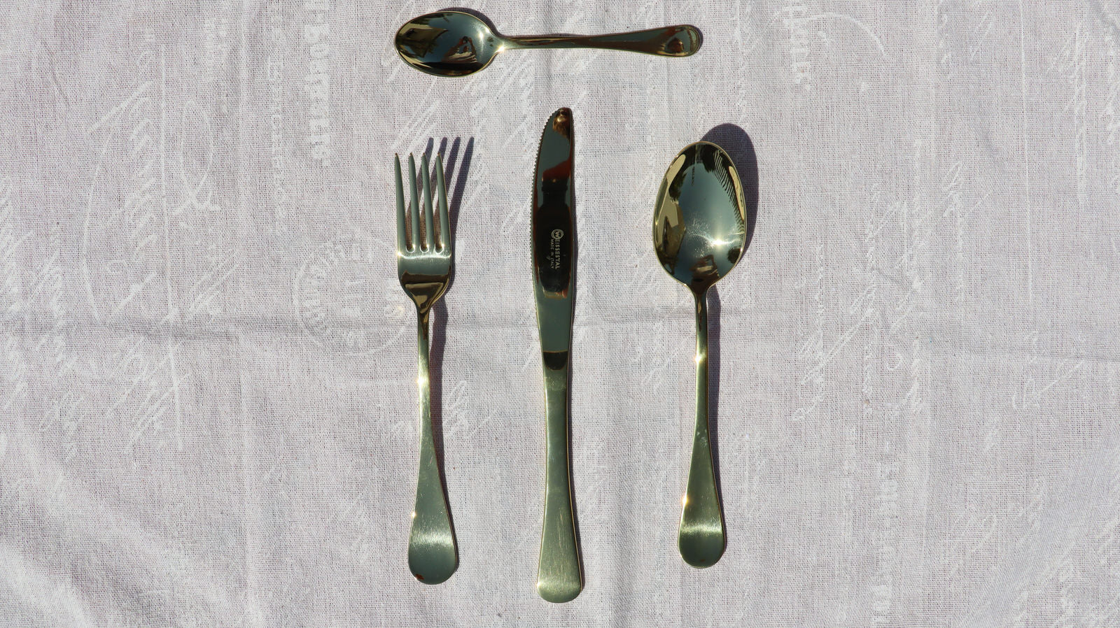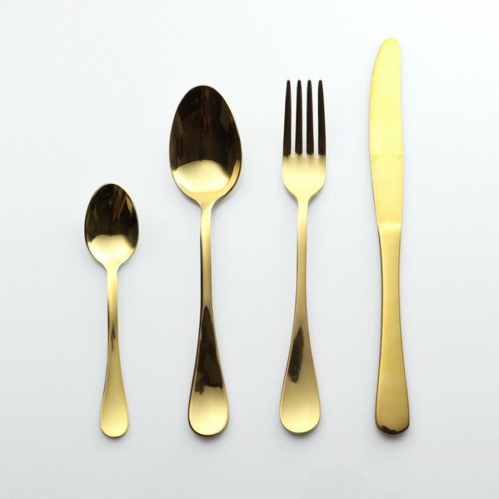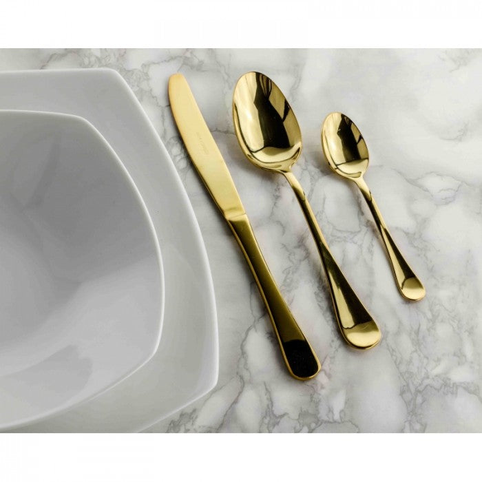 Posto tavola 4 pezzi in acciaio Inox 18/10, colore oro lucido. Collezione Sintesi Gold.