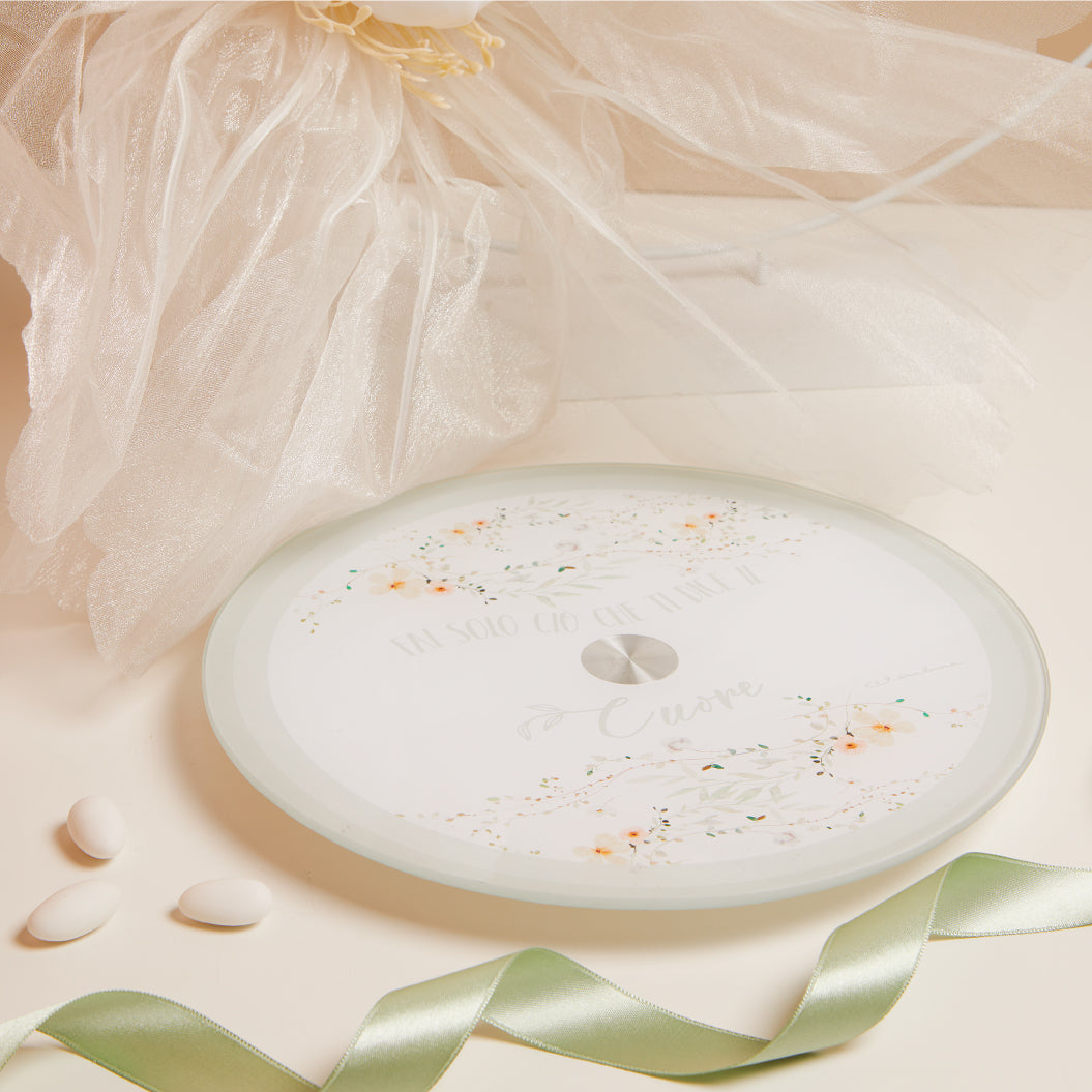 VASSOIO GIREVOLE DECORO FLOREALE VERDE Ø 25X0.4 CM